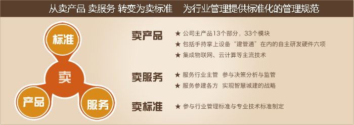 從賣產(chǎn)品 賣服務 轉變?yōu)橘u標準 為行業(yè)管理提供標準化的管理規(guī)范